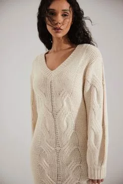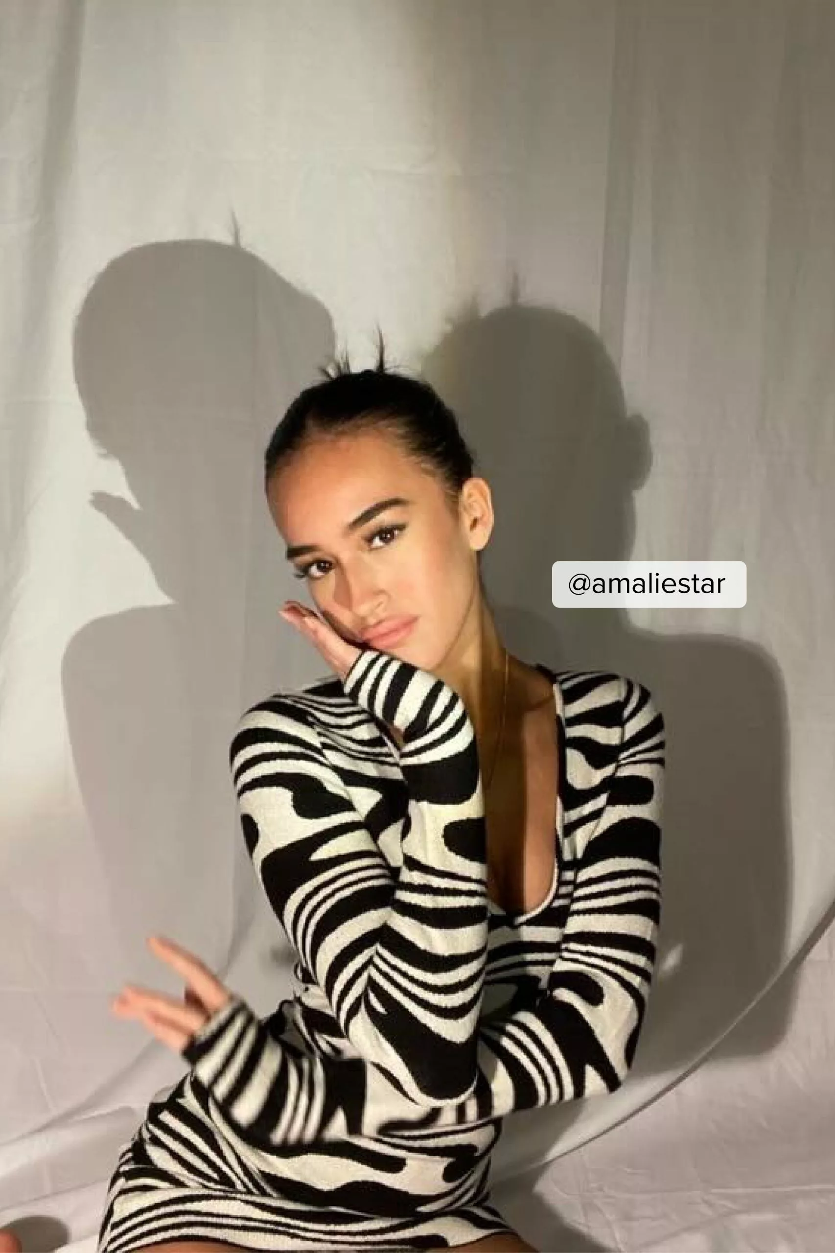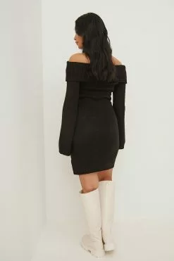 This mini dress features a round neck, long sleeves, an open back and a soft, knitted material.