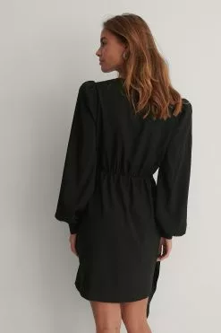 This maxi dress features a V-neck with a drawstring detail, long sleeves, a drawstring at the bottom and a ribbed, knitted material.