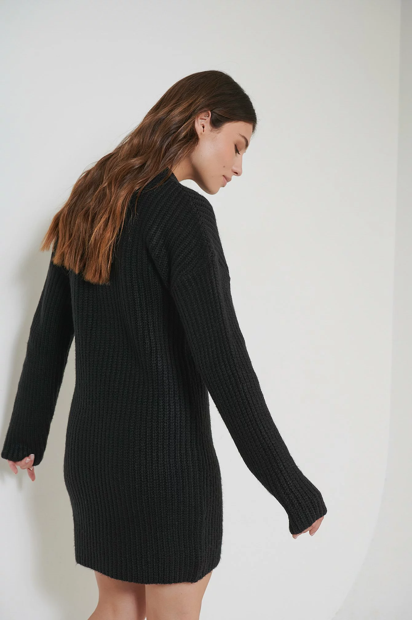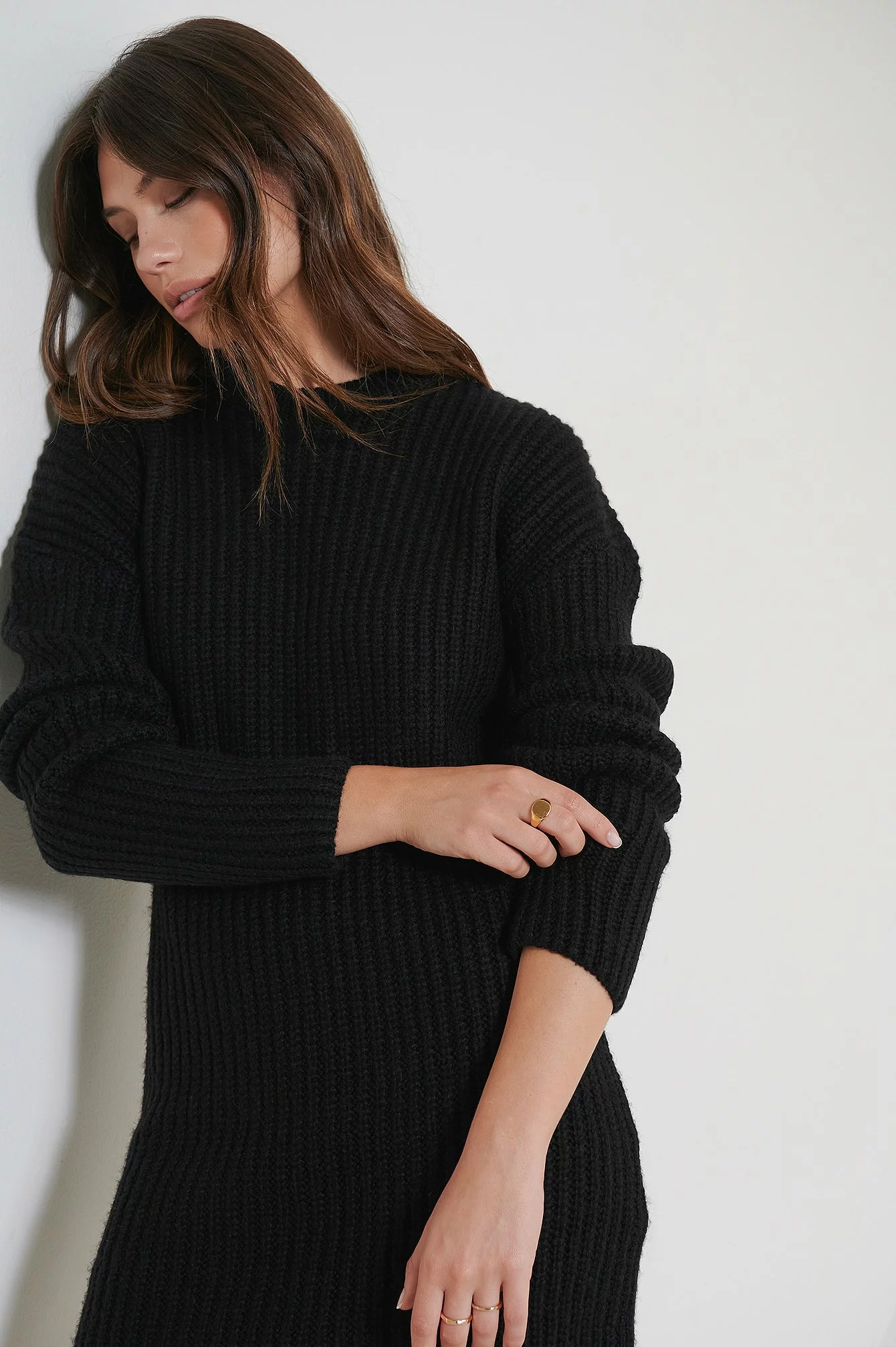 This dress features a rounded neckline, dropped shoulders, a knitted design and a mini length.