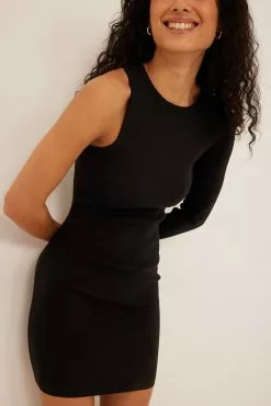 Cleo Kinnaman X NA-KD One Sleeve Lacing Detail Knitted Dress