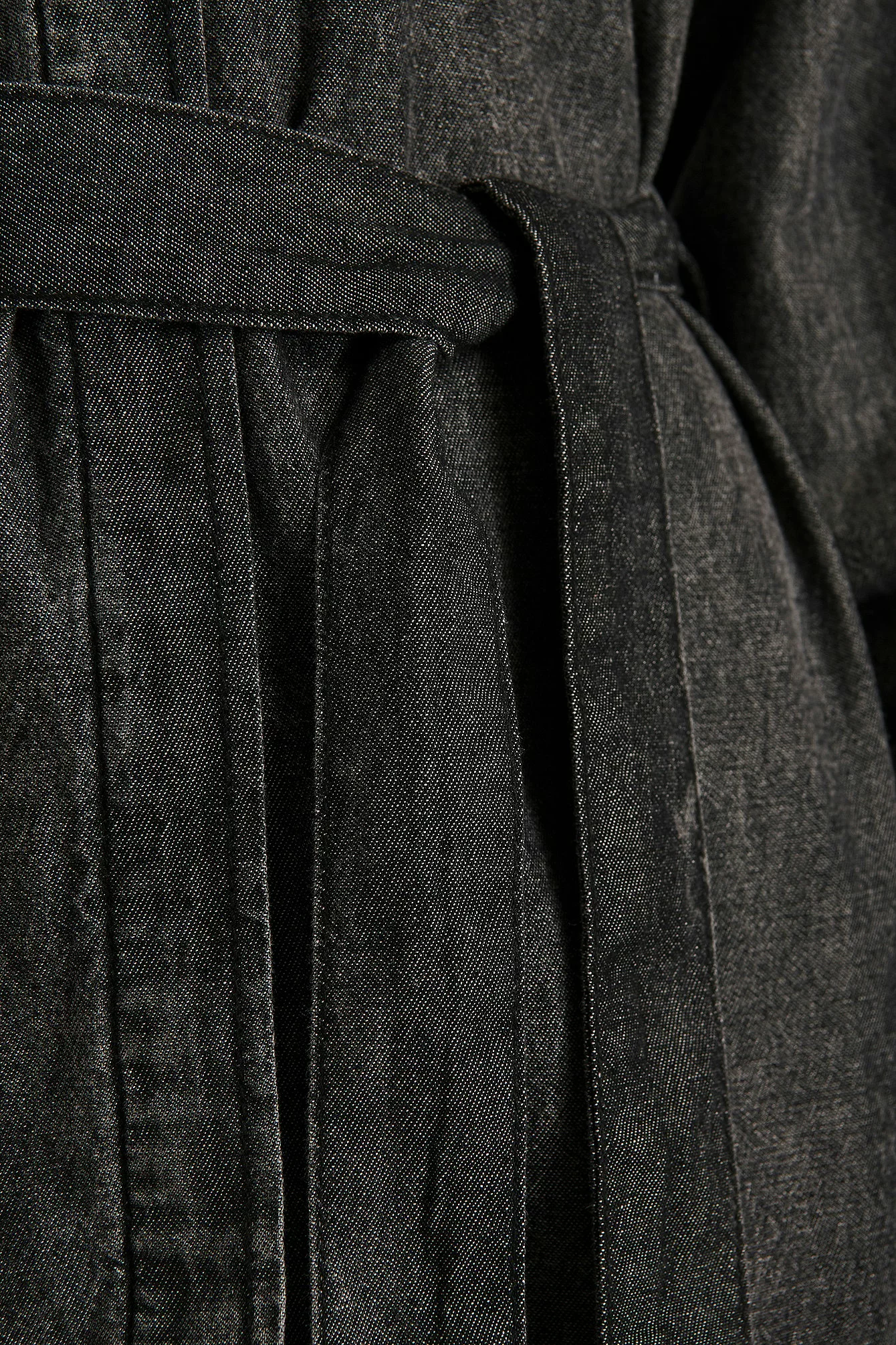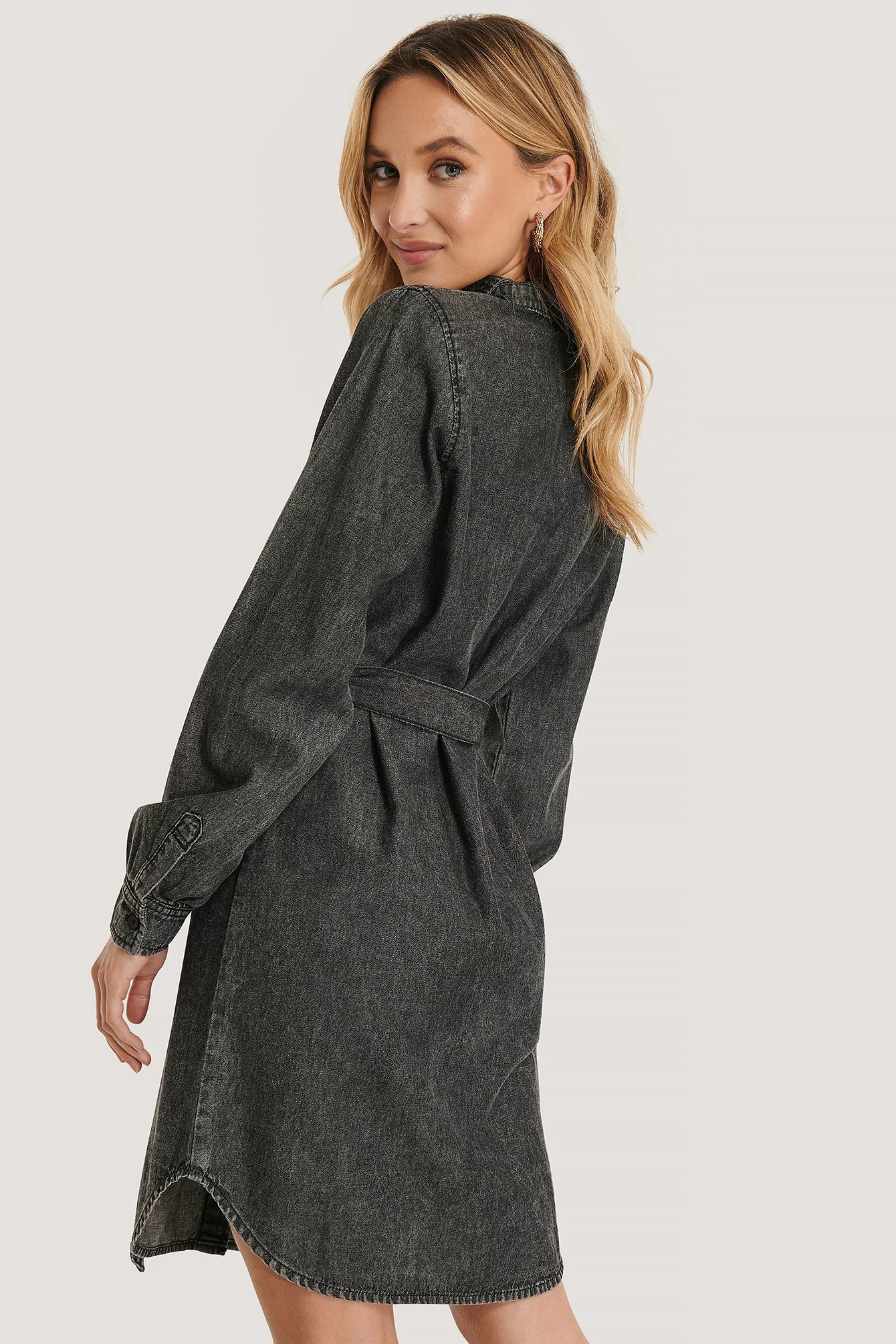 This mini dress features a classic collar, long sleeves with button closures at the cuffs, an additional waistband, hidden button closures along the front and denim material.