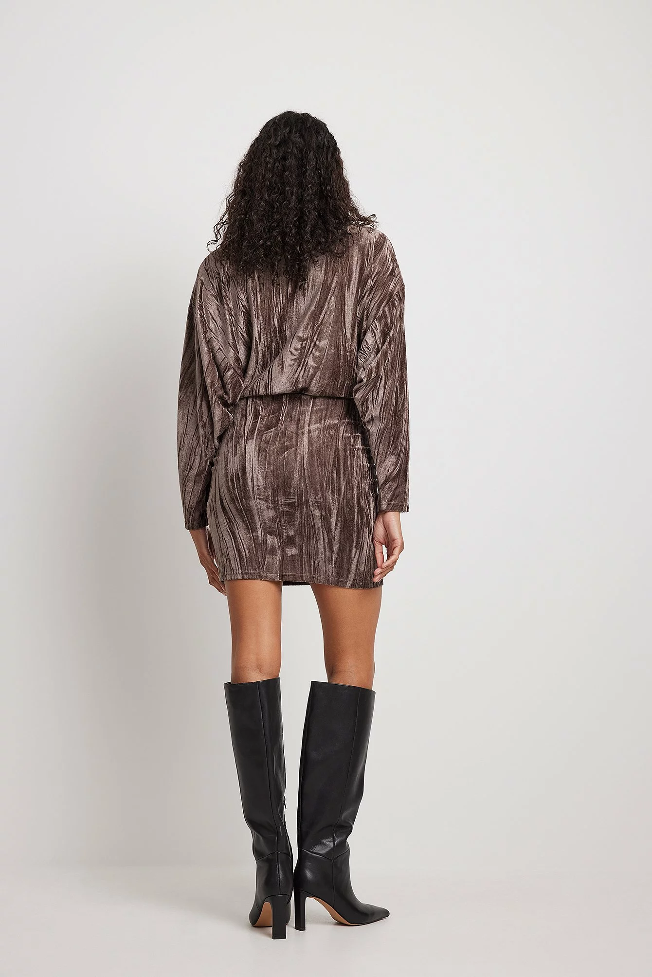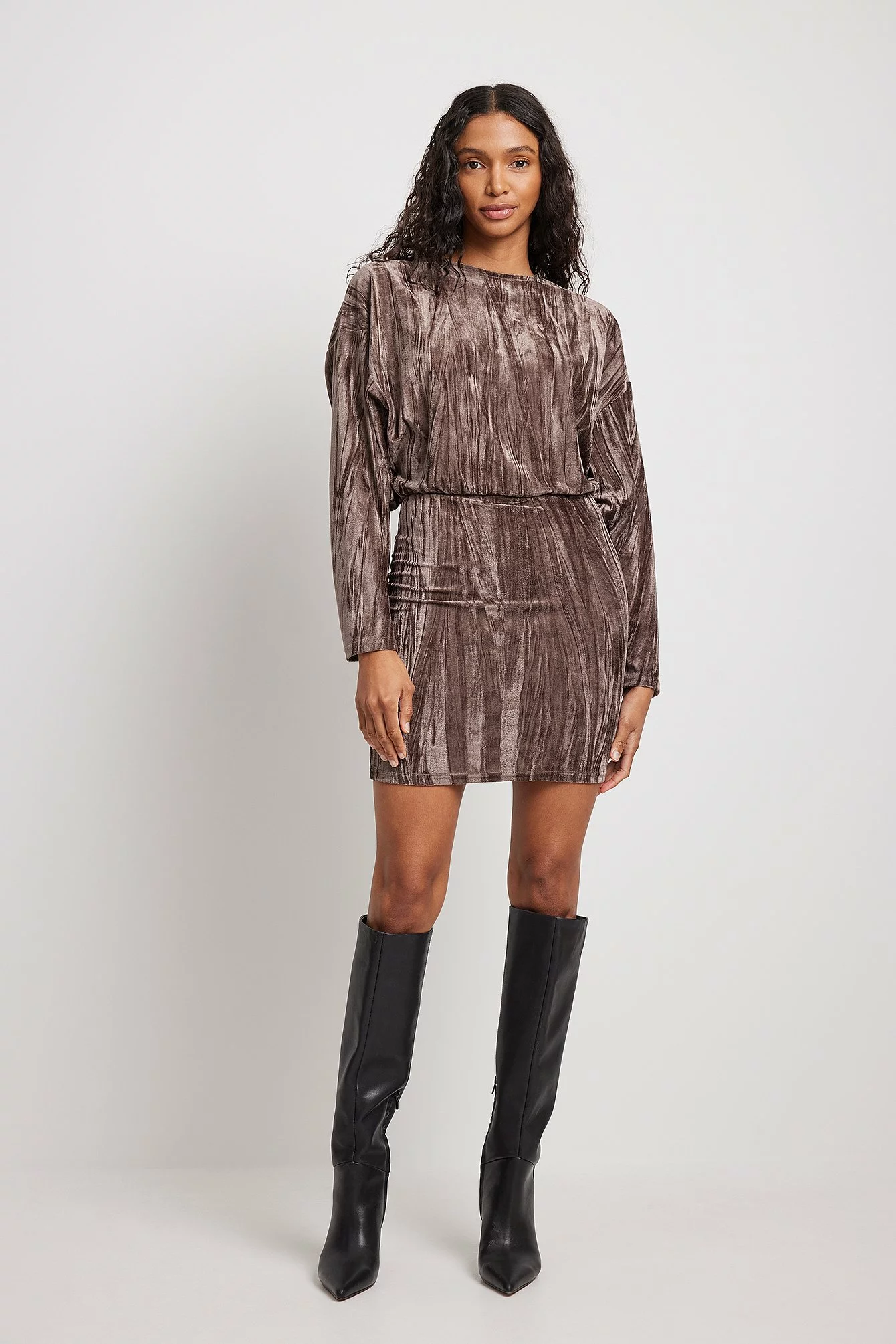 This mini dress is made of velvet and features a crew neckline, long sleeves and a loose fit with an elastic waistband.