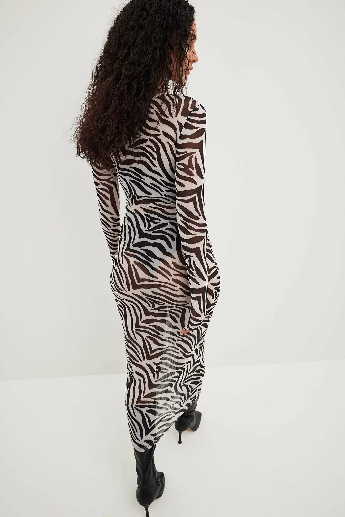 This midi dress features a mesh design. It has a round neckline and tight fit.