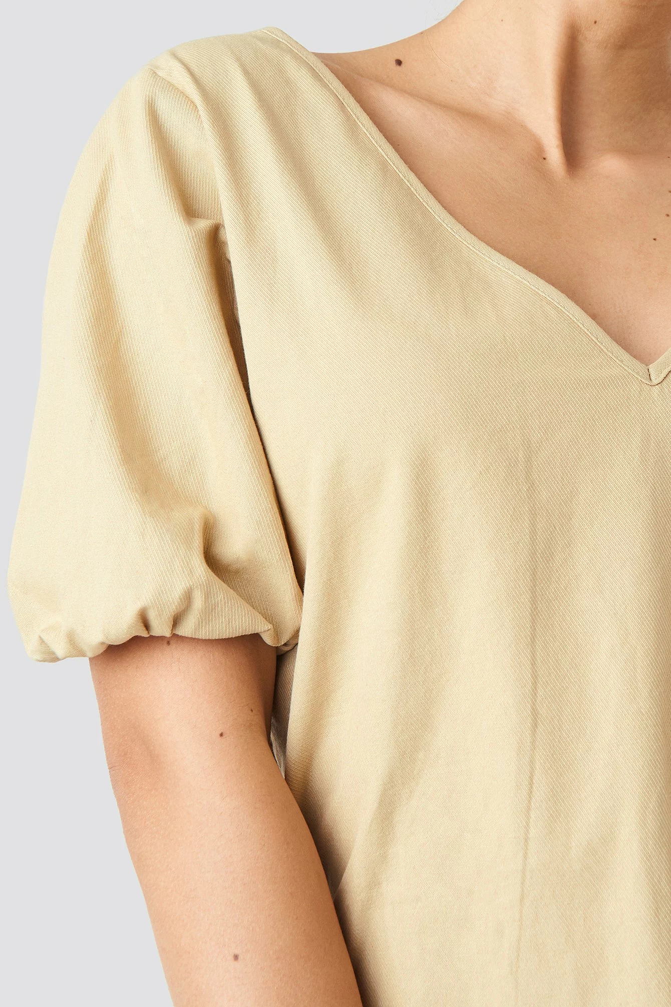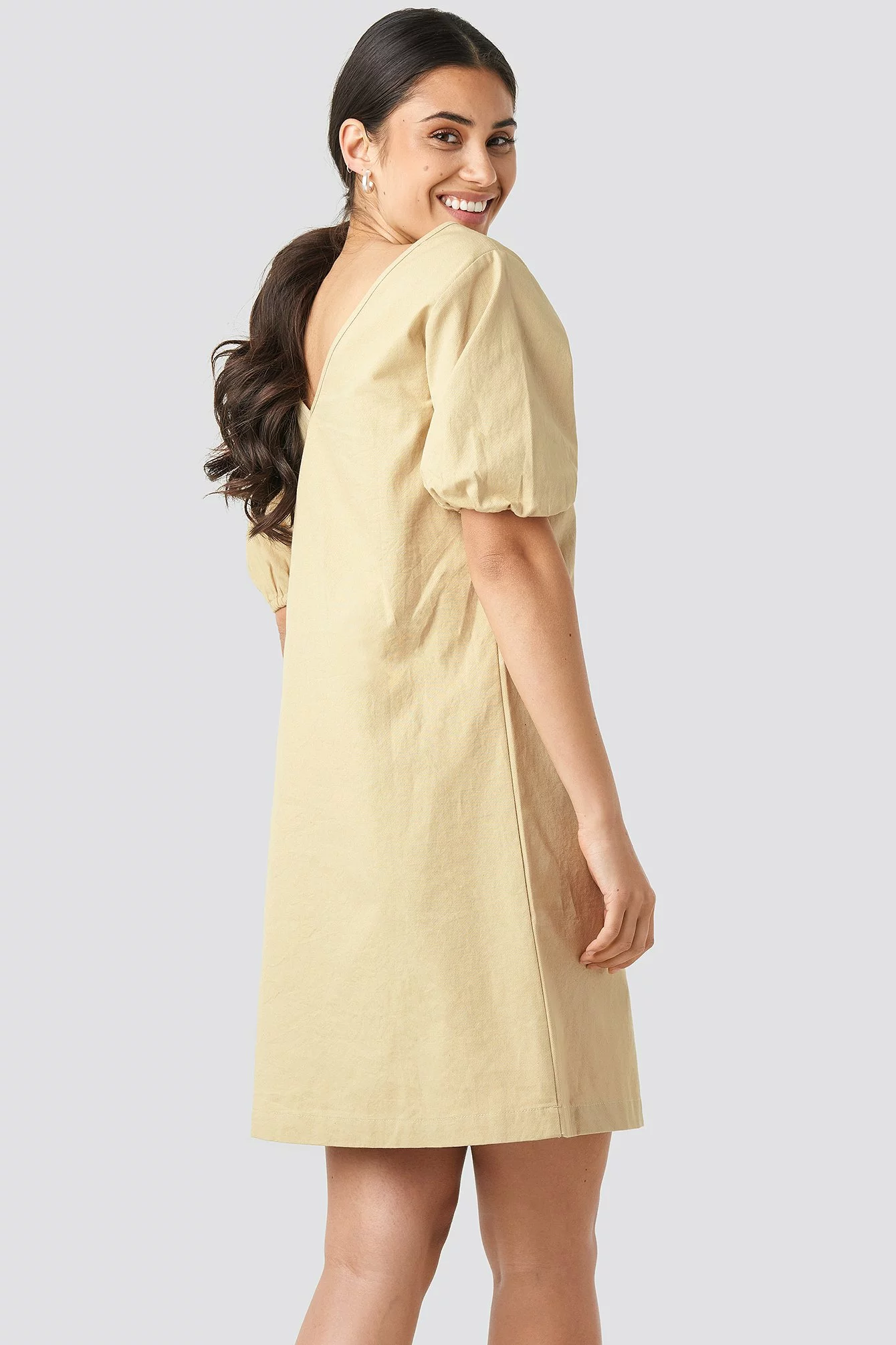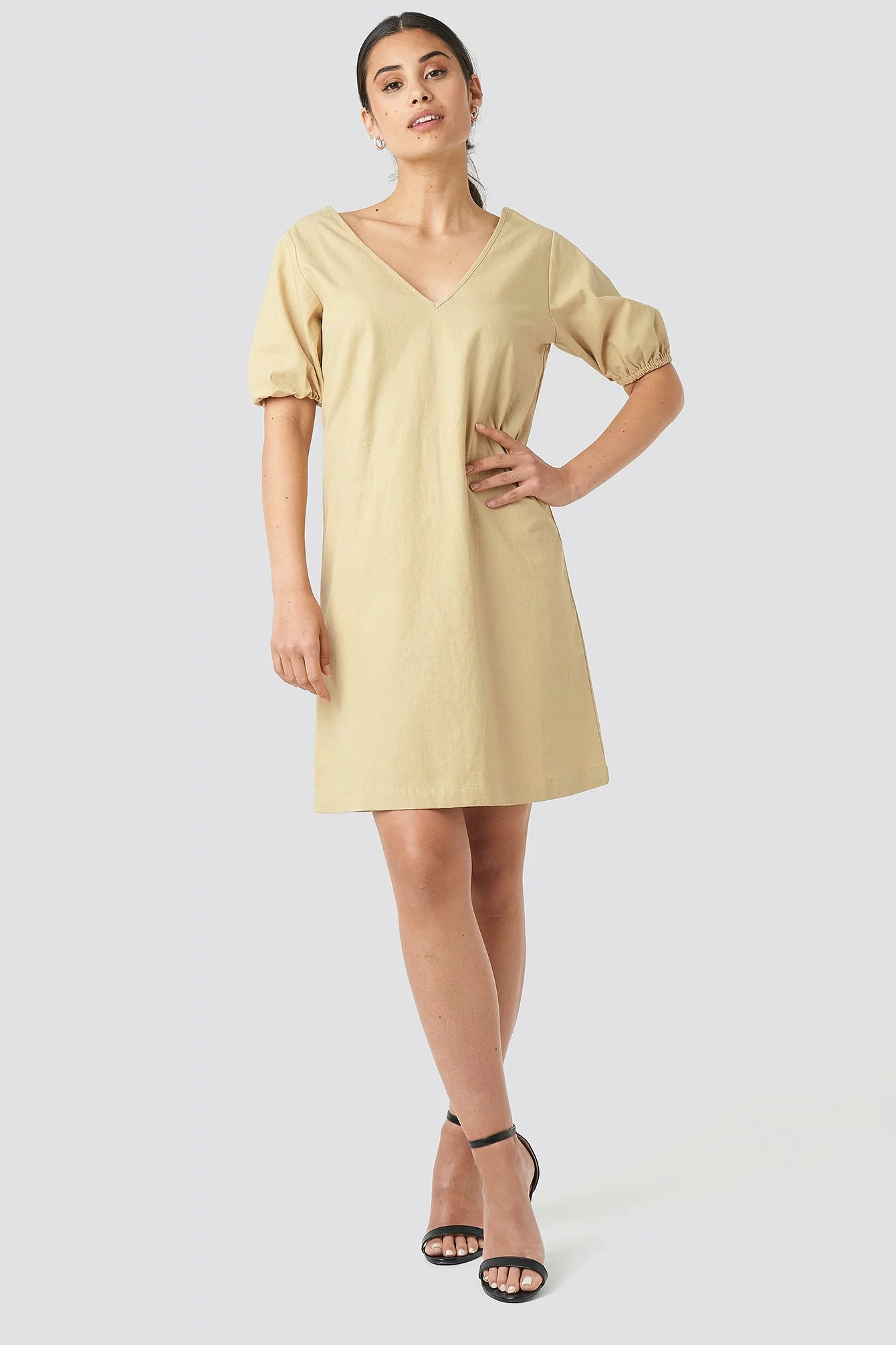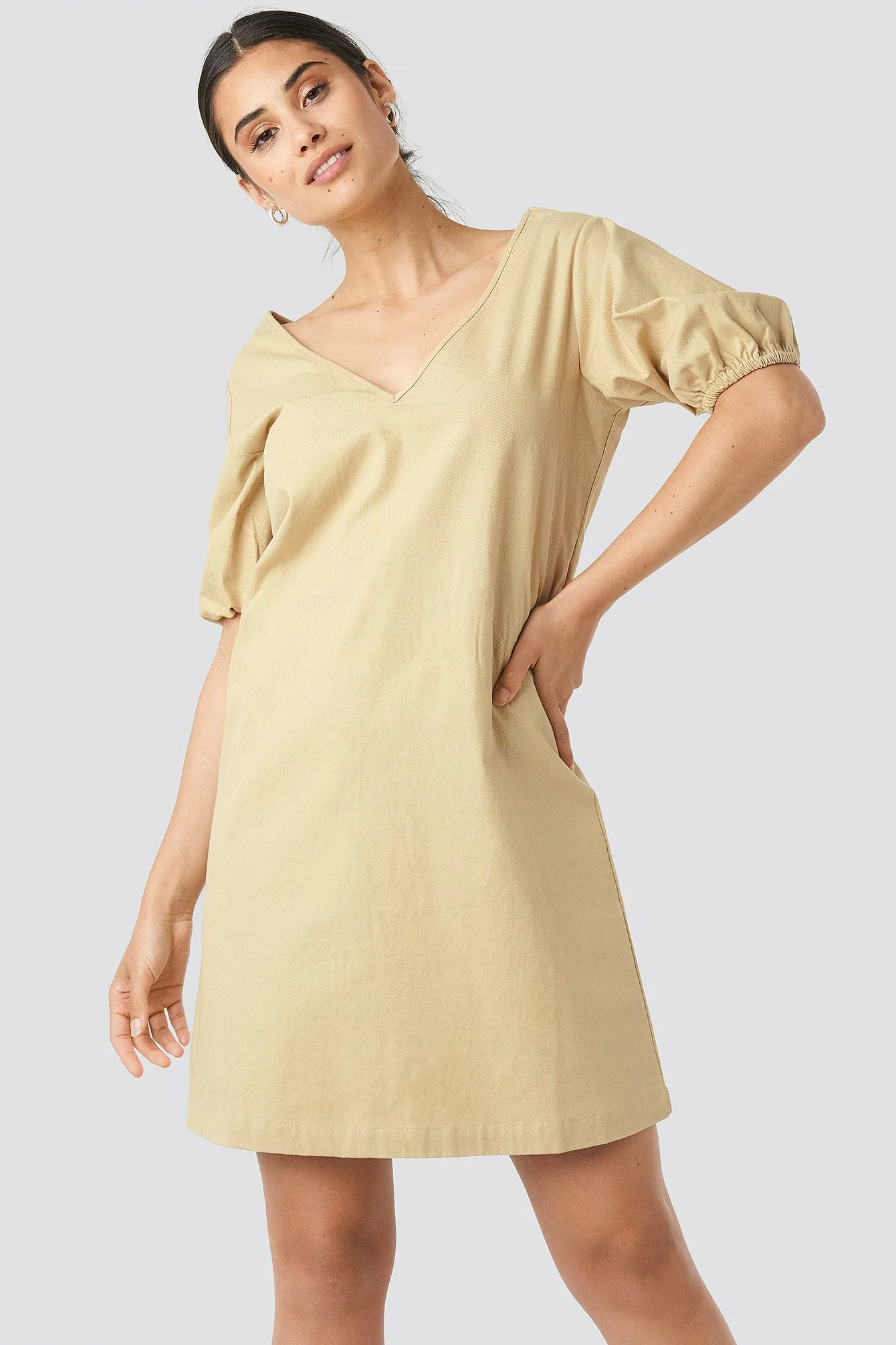 This mini dress by NA-KD features a v neckline, puff sleeves and a flowy fit.