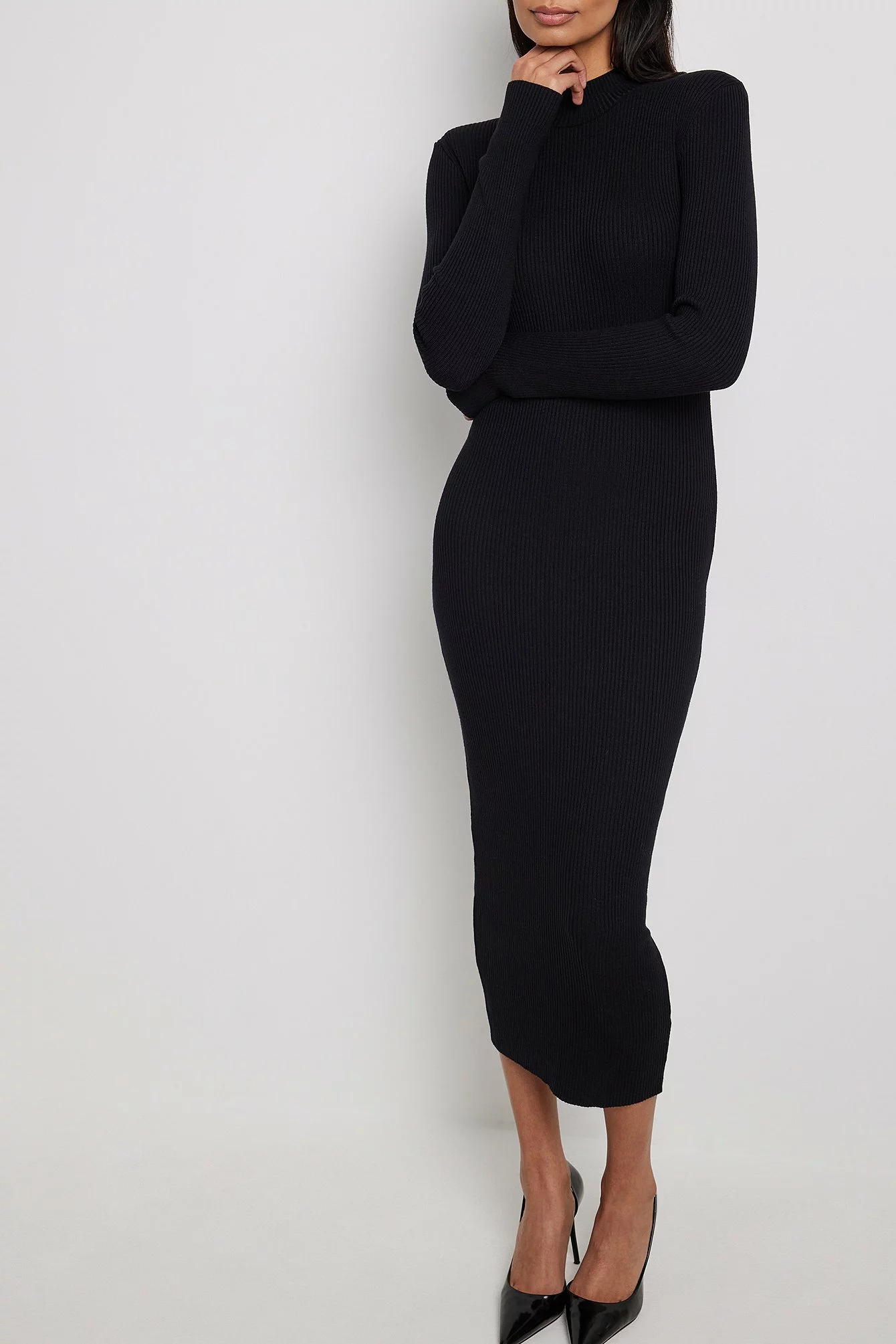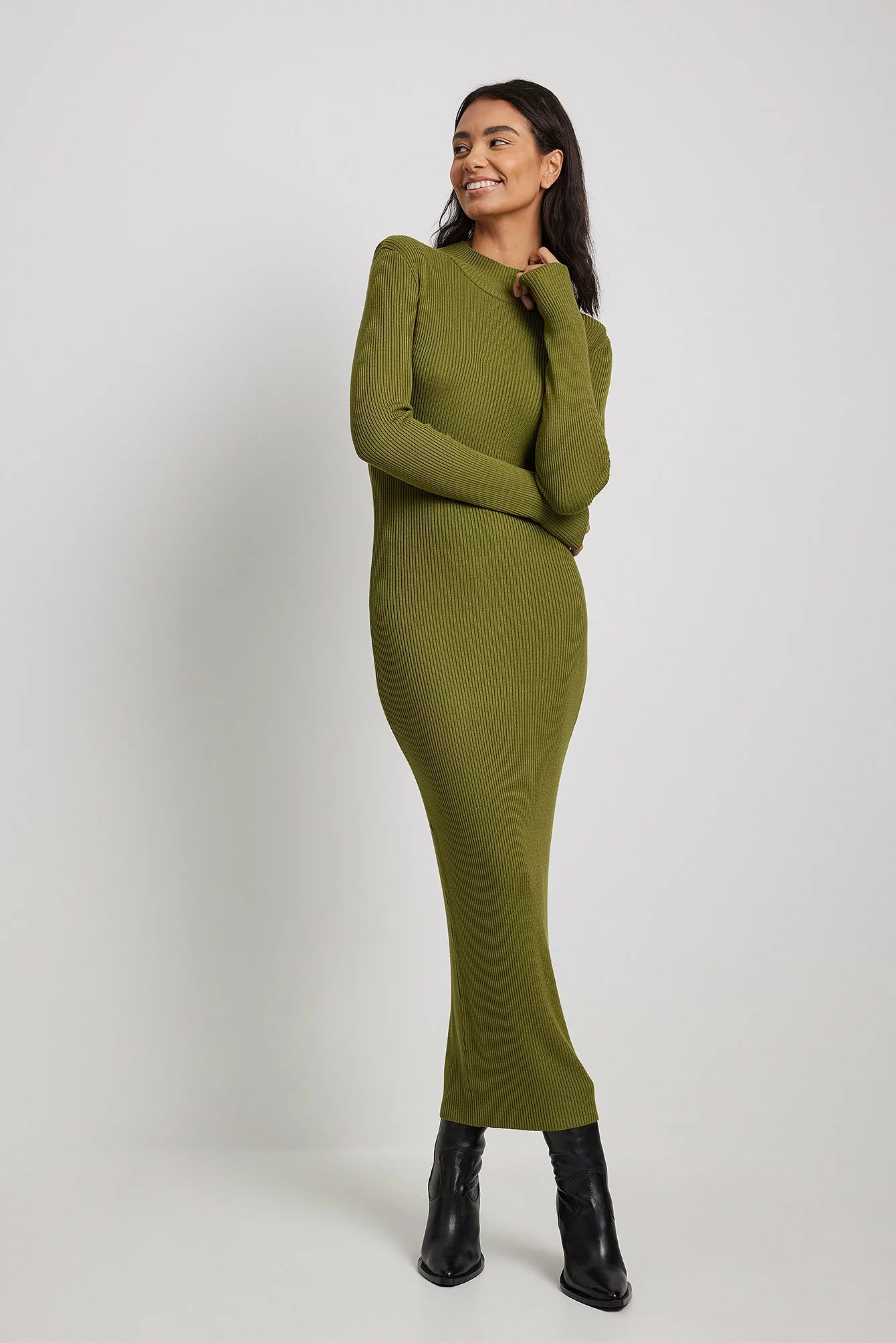 This maxi dress features a high neck, long sleeves, a knitted design and a bodycon fit.