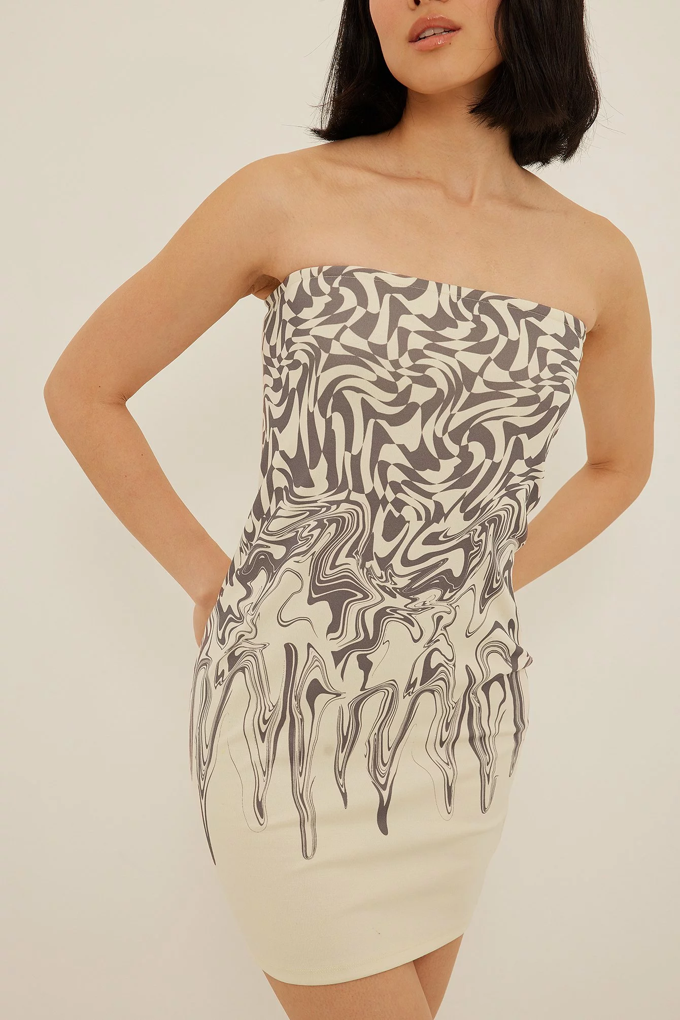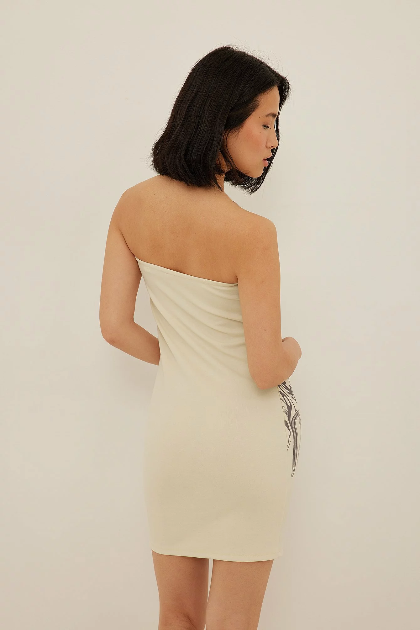 This mini dress features a bandeau design with an inner silicone trim on the top hem and a slim fit with a slightly stretchy material.