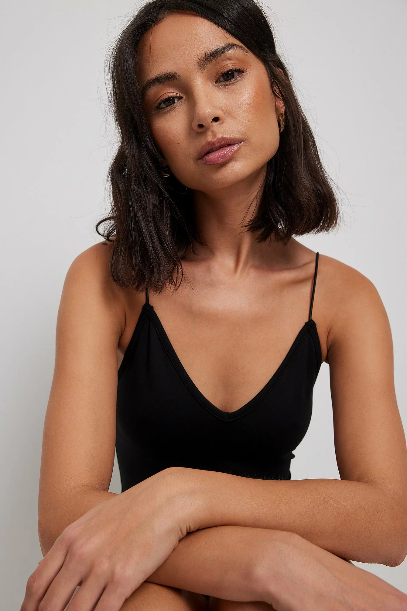 This mini dress features a v neckline, non adjustable spaghetti straps and a stretchy bodycon fit.