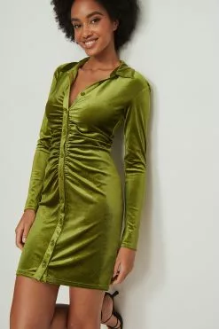 NA-KD Party Rouched Button Velvet Dress